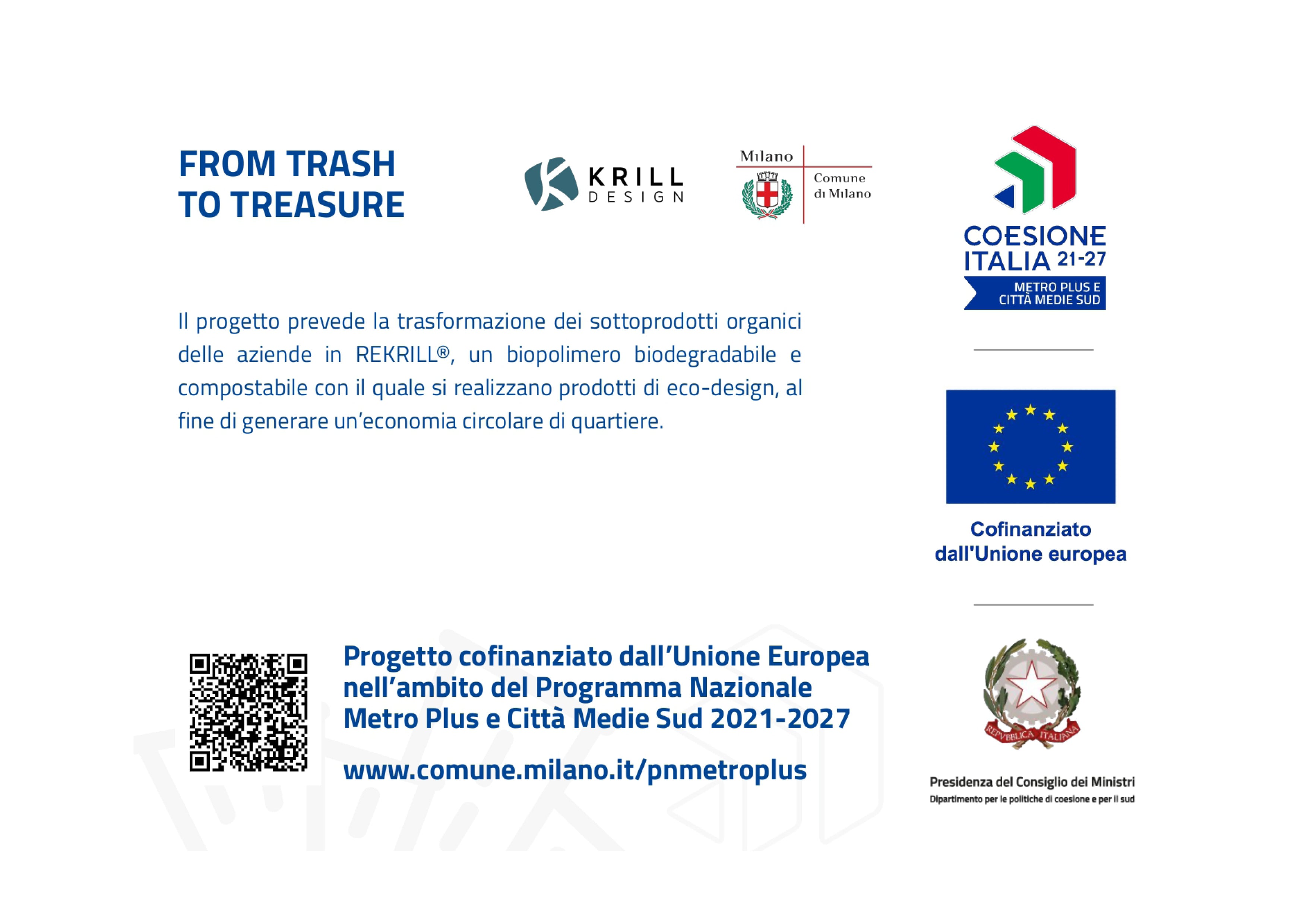 Krill Design ist ein innovatives italienisches KMU, das nachhaltige Materialien entwickelt, die aus Nebenprodukten der Lebensmittelindustrie gewonnen werden. Mit unserer patentierten Technologie verwandeln wir diese Ressourcen in REKRILL®, ein biobasiertes Polymer, das in Pelletform erhältlich ist. Als praktikable Alternative zu erdölbasierten Kunststoffen ist REKRILL® für den Einsatz in industriellen Prozessen und Fertigungsanwendungen sowie für Marken konzipiert, die Nachhaltigkeit als Motor für Innovation und Verantwortung sehen.